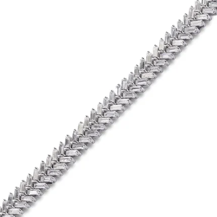 The Baguette Diamond Chevron Bracelet is a stunning piece crafted from 14K solid gold, featuring 3.18 ct of dazzling baguette diamonds.