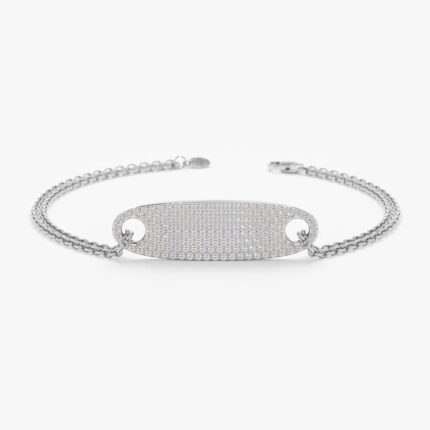 A statement-making 18K solid gold ID bracelet, drenched in natural diamond sparkle with a sleek micro pavé finish for modern luxury.