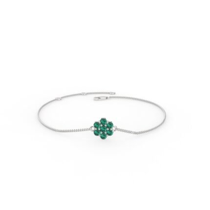 Get this Product in 18K GoldA stunning 14K solid gold bracelet featuring natural emeralds in a beautiful floral design, adding an elegant and vibrant touch to any look.