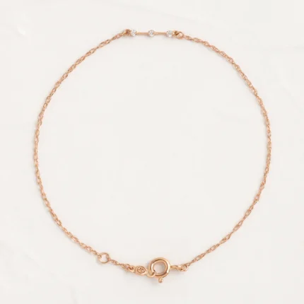 A delicate 18K rose gold distance bracelet set with natural diamonds for subtle sparkle—perfect for everyday wear and effortless stacking.