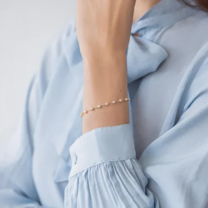 Elegant 14K solid gold chain bracelet adorned with sparkling diamonds—crafted for timeless shine, refined charm, and everyday sophistication.