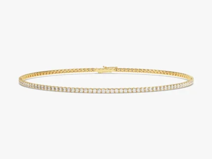 The 14K Solid Gold Diamond Distance Tennis Bracelet features 1.8 carats of brilliant diamonds set in a modern distance-style design.