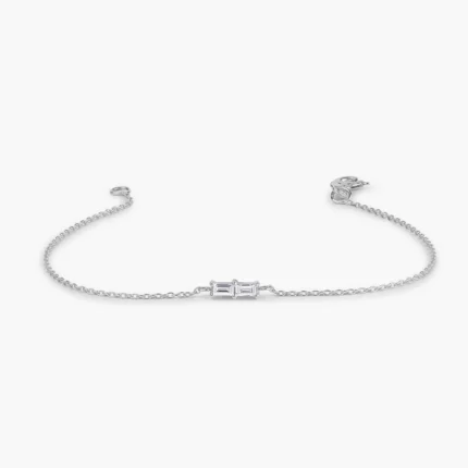 Get this Product in 18K Gold The 14K Solid Gold Double Baguette Diamond Bracelet features two elegantly set baguette diamonds, showcasing their brilliance in high-quality 14K solid gold.