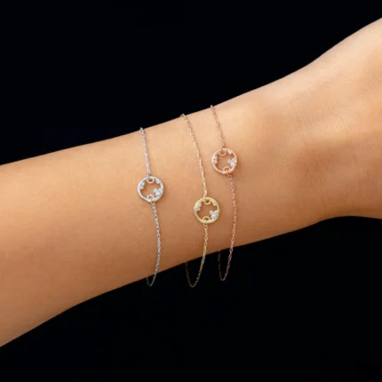 14k Solid Gold Petite Natural Diamond Satellite Bracelet