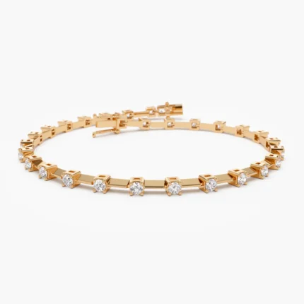 Elegant 14K rose gold petite diamond bracelet with F color, VS clarity natural diamonds. BIS Hallmarked for authenticity.