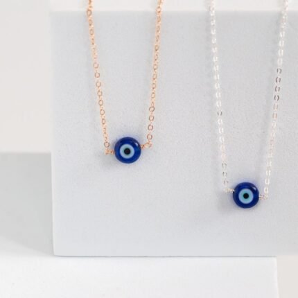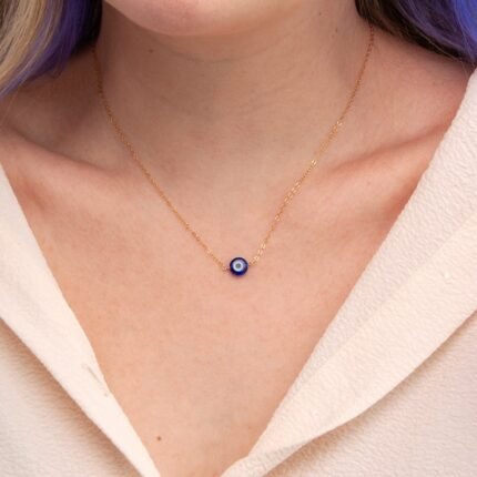 Elegant 18k solid gold tiny evil eye necklace, combining timeless design with a symbolic charm for a versatile and stylish accessory.