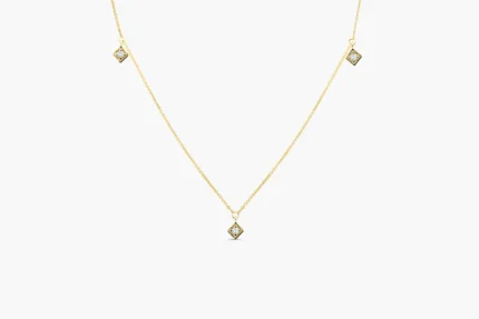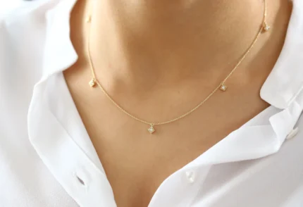 The Boho Natural Diamond Raindrop Choker is a stunning, chic necklace crafted in 18k solid gold, available in white, rose, and yellow gold. This elegant piece features a boho-inspired design with sparkling diamonds arranged in a raindrop pattern, making it the perfect accessory to complement any outfit. The necklace is BIS Hallmarked, ensuring its quality and authenticity. With a shipping time of 10-12 business days, it’s an ideal choice for those looking to add a touch of sophistication and style to their jewelry collection. For assistance, customer support is available through live chat and video calls.