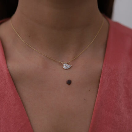 14K Gold Leaf Natural Diamond Pendant Necklace