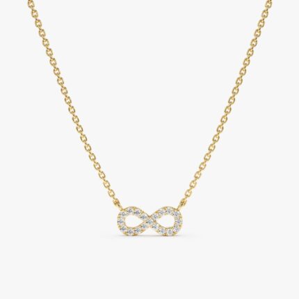 Get this Product in 18K Gold Embrace eternal love and elegance with our Infinity Diamond Necklace, featuring a dainty pendant crafted from solid 14k gold and adorned with sparkling diamonds.