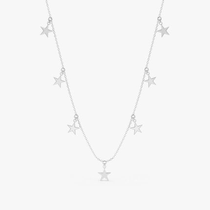 Dainty Star Drop Necklace: Delicate and celestial, this handmade solid gold necklace features seven charming star charms, symbolizing dreams and wishes.