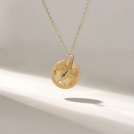 Scorpion Pendant Necklace, 14k Solid Yellow Gold Anima Charm, Coin Necklace