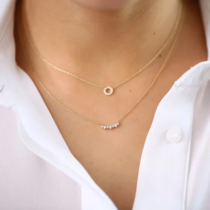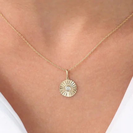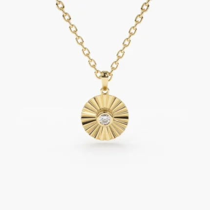 Get this Product in 18K Gold The 14K Gold Natural Diamond Disc Ray Necklace exudes subtle elegance with its refined design.