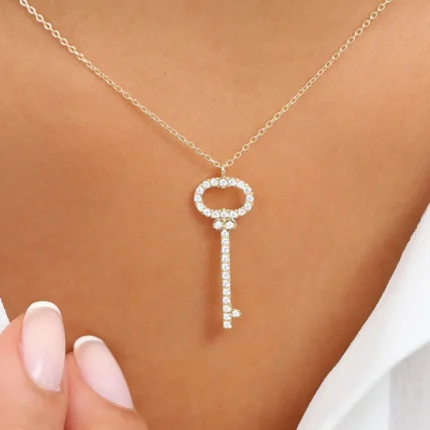 Get this Product in 18K Gold The 14K Gold Natural Diamond Key Charm Necklace features 31 round diamonds totaling 0.20 ct with G color and SI1 clarity. Set in a micro-pave design, this elegant piece is available in white, rose, or yellow gold. Enjoy 15-25 business day shipping and personalized support via live chat and video calls.