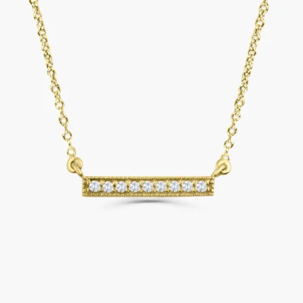 Get this Product in 18K Gold The 14K Natural Diamond Bar Necklace is a stunning addition to any jewelry collection, featuring 9 round diamonds (0.10 ct) set in a sleek bar design.