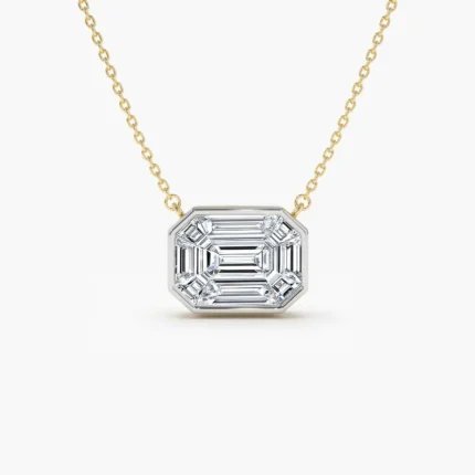 14K Solid Gold Illusion Setting Step Cut Mosaic Diamond Necklace