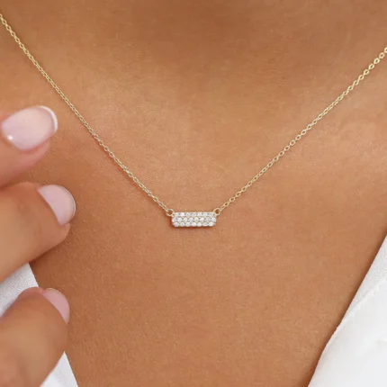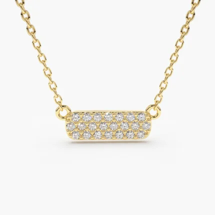 14K Solid Gold Micro Pave Diamond Bar Necklace
