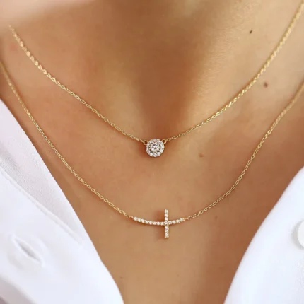 The 14K Gold Micro Pave Natural Diamond Cross Necklace embodies timeless elegance with a touch of spirituality.