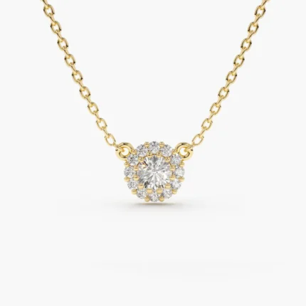 14K Solid Gold Halo Diamond Necklace