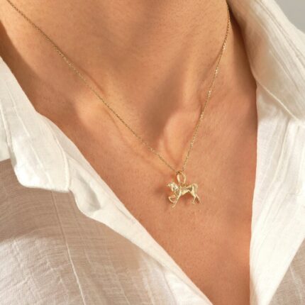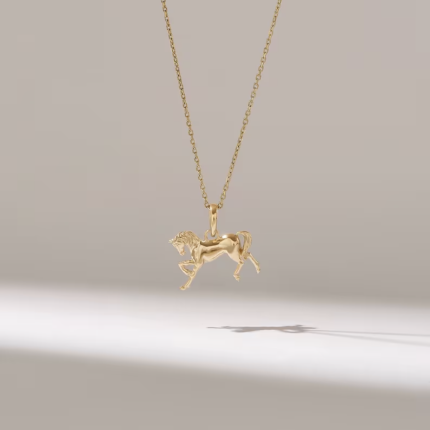 14K Solid Gold Horse Pendant Necklace