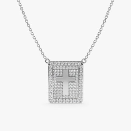 Get this Product in 18K GoldElevate your faith with our Diamond Cross Tablet Necklace. Handmade from solid gold, this elegant piece features a shimmering square pendant adorned with sparkling diamonds, exuding both faith and sophistication.