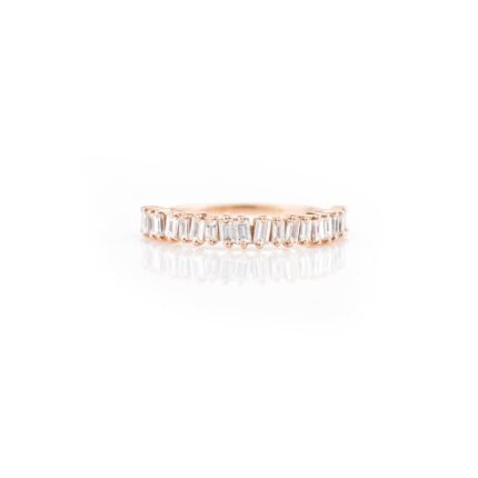 18k rose gold half eternity band with 0.48 ct GH COLOR, VS-SI Clarity baguette natural diamonds. GIA Certified, BIS Hallmarked. Elegant & stackable.