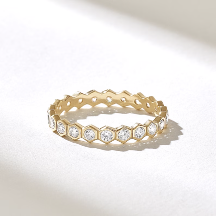 Elegant 18k solid gold eternity band with 0.32 ct GH color, VS-SI clarity natural diamonds. Perfect for stacking. BIS Hallmarked & GIA certified.