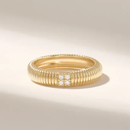 18K Solid Gold Channel Setting Princess Cut Half Eternity Diamond Ring