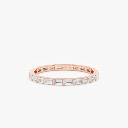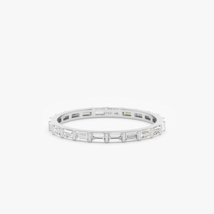18K Solid Gold Ribbed Baguette Natural Diamond Eternity Band