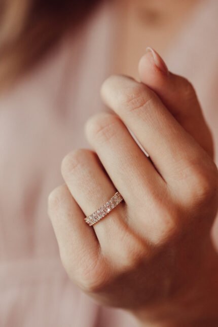 18K Solid Gold Small Round Diamond Full Eternity Band Ring