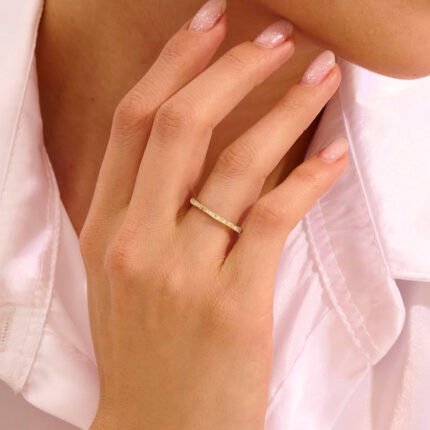 18K Solid Gold Small Round Diamond Full Eternity Band Ring