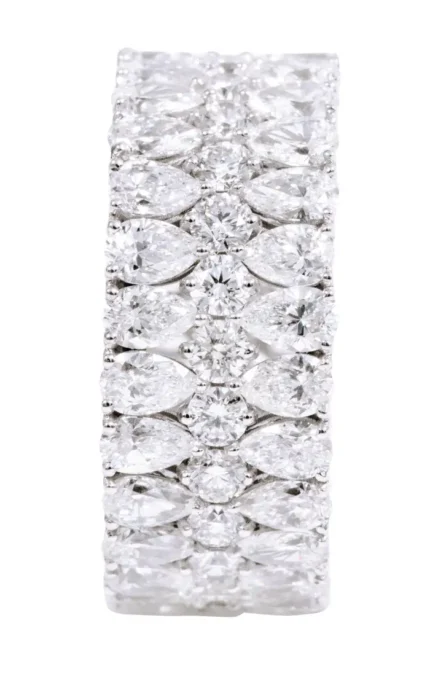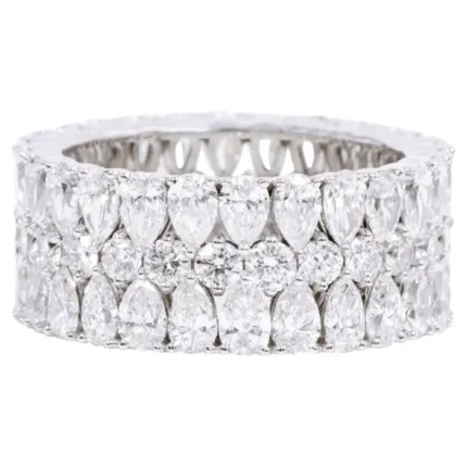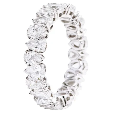 18k gold eternity band featuring 4.57 ctw pear-shaped natural diamonds, I-J COLOR, VS-SI Clarity. BIS Hallmarked & GIA Certified.