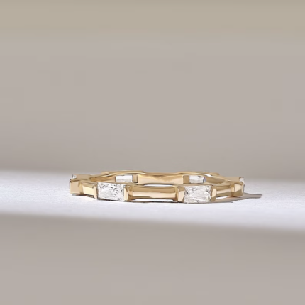 Baguette Half Eternity Ring | 14k Solid Gold Natual Diamond Ring | 0.3CT Tiny Gold Ring