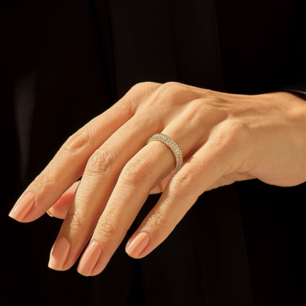 Beaded Pave Wedding Band | 4MM Stackable Ring | Solid Gold Infinity Ball Ring