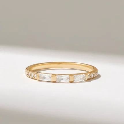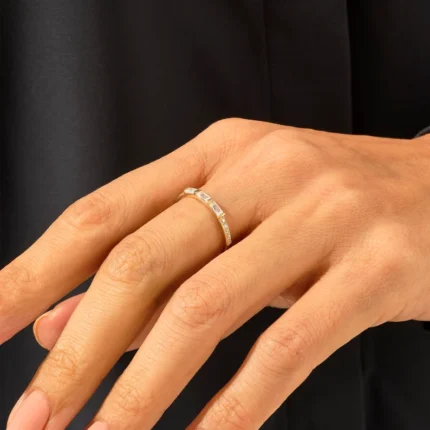 Natural Diamond Trio Baguette Band | 14k Solid Gold Three Stone Marriage Ring