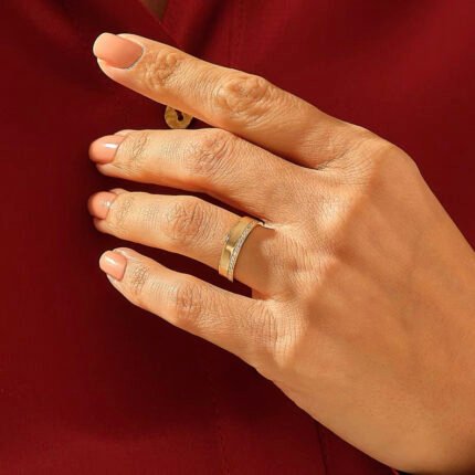 Natural Diamond Wedding Ring: 14k Solid Gold Geometric Band for Women