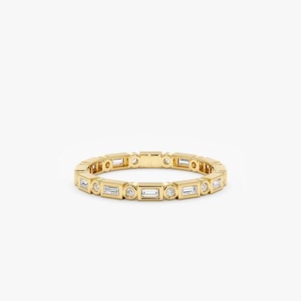 14K Solid Gold Baguette Natural Diamond Eternity Ring