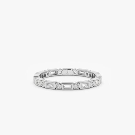 Get this Product in 18K Gold14K Solid Gold Eternity Ring featuring 0.90 ctw baguette-cut natural diamonds. Available in 3 gold colors. GIA-certified, BIS hallmarked.