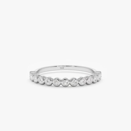 Get this Product in 18K Gold14K Gold Bezel Diamond Half Eternity Ring in multiple widths (1.5–3.5 mm). GIA-certified natural diamonds. Customizable and stackable.