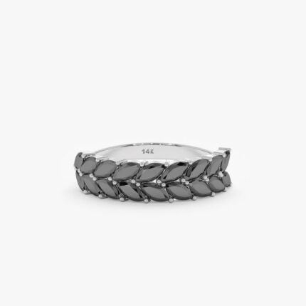14K Solid Gold Black Natural Diamond Half Eternity Ring