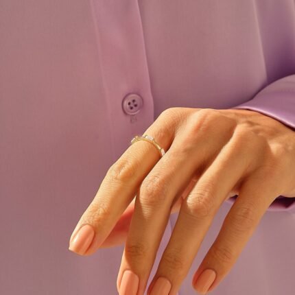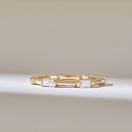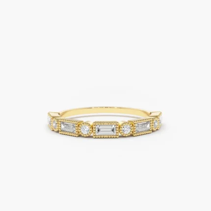 14K Solid Gold Baguette Natural Diamond Stacking Band
