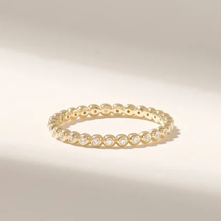 14K Solid Gold Ball Eternity Ring: Dainty Pave Dot Wedding Band with Real Natural Diamonds