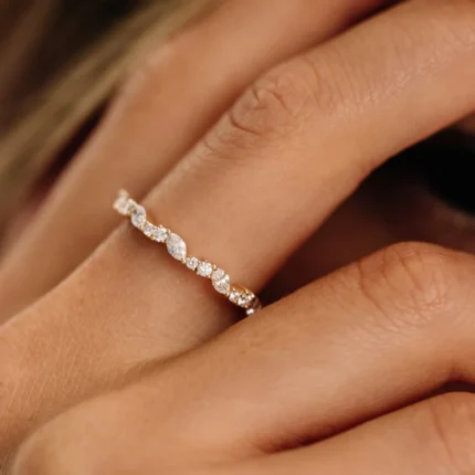 Get this Product in 18K Gold14K Gold Marquise Half Eternity Ring with 0.14 ct GH/VS-SI natural diamonds. 1 mm band. GIA & BIS certified. Elegant and timeless.