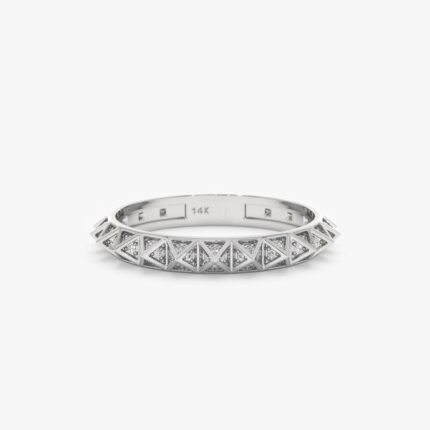 Get this Product in 18K Gold3 mm 14K Gold Pyramid Eternity Ring with 0.05 ctw GIA-certified diamonds. Modern geometric design in white, yellow, or rose gold.