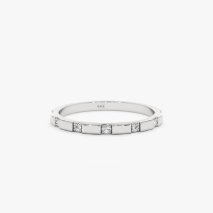 14K Solid Gold Ribbed Baguette Natural Diamond Eternity Band