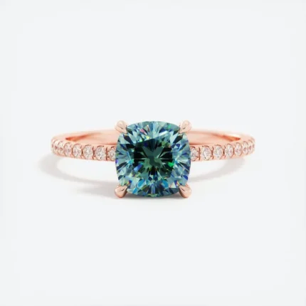 18k Gold Teal Sapphire Hidden Halo Diamond Engagement