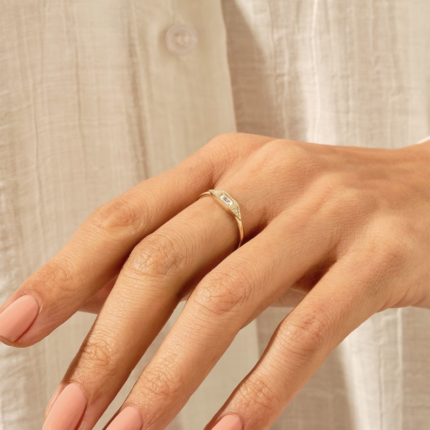 Natural Diamond Baguette Signet Ring | 14k Solid Gold Vintage Pinky Ring For Women