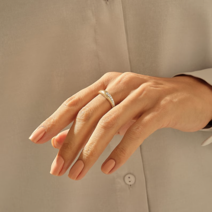 Celestial dome signet ring in 14K gold with 0.11 ct GH color, VS-SI clarity natural diamonds. BIS Hallmarked & GIA certified.