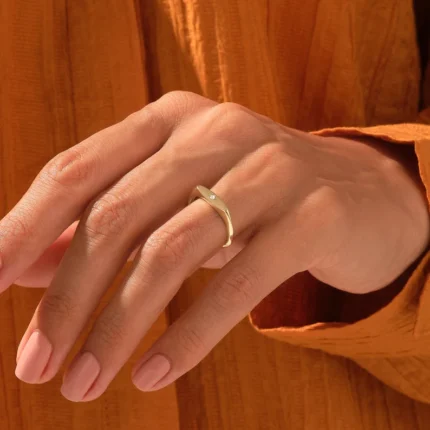 Minimalist 14k solid gold bezel pinky ring with 0.06ct natural diamonds. Lightweight, elegant, and GIA & BIS certified.