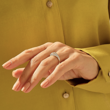 Round Natural Diamond Solo Dome Ring | Low Dome Signet Ring | Pave Statement Ring