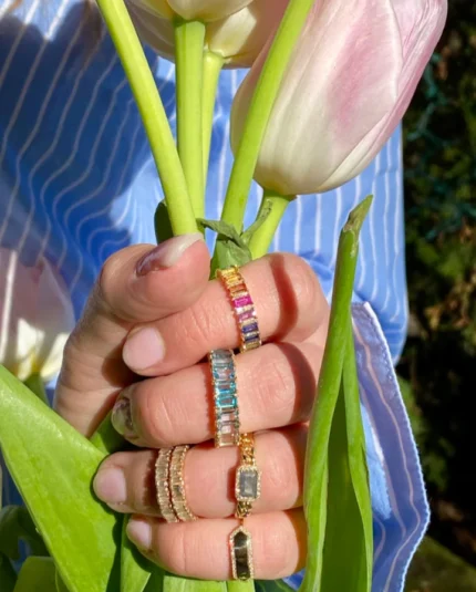 18K Solid Gold Rainbow Sapphire Eternity Ring